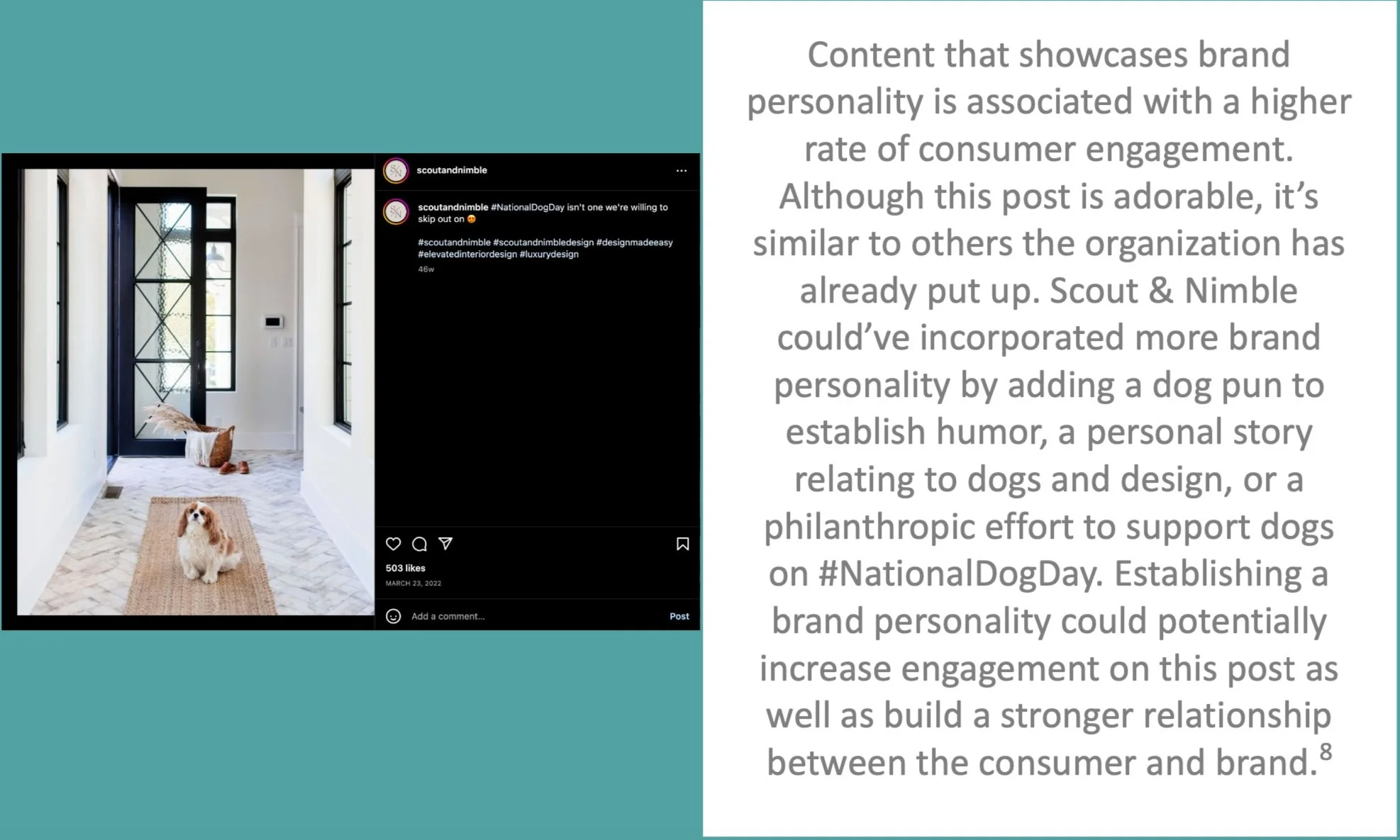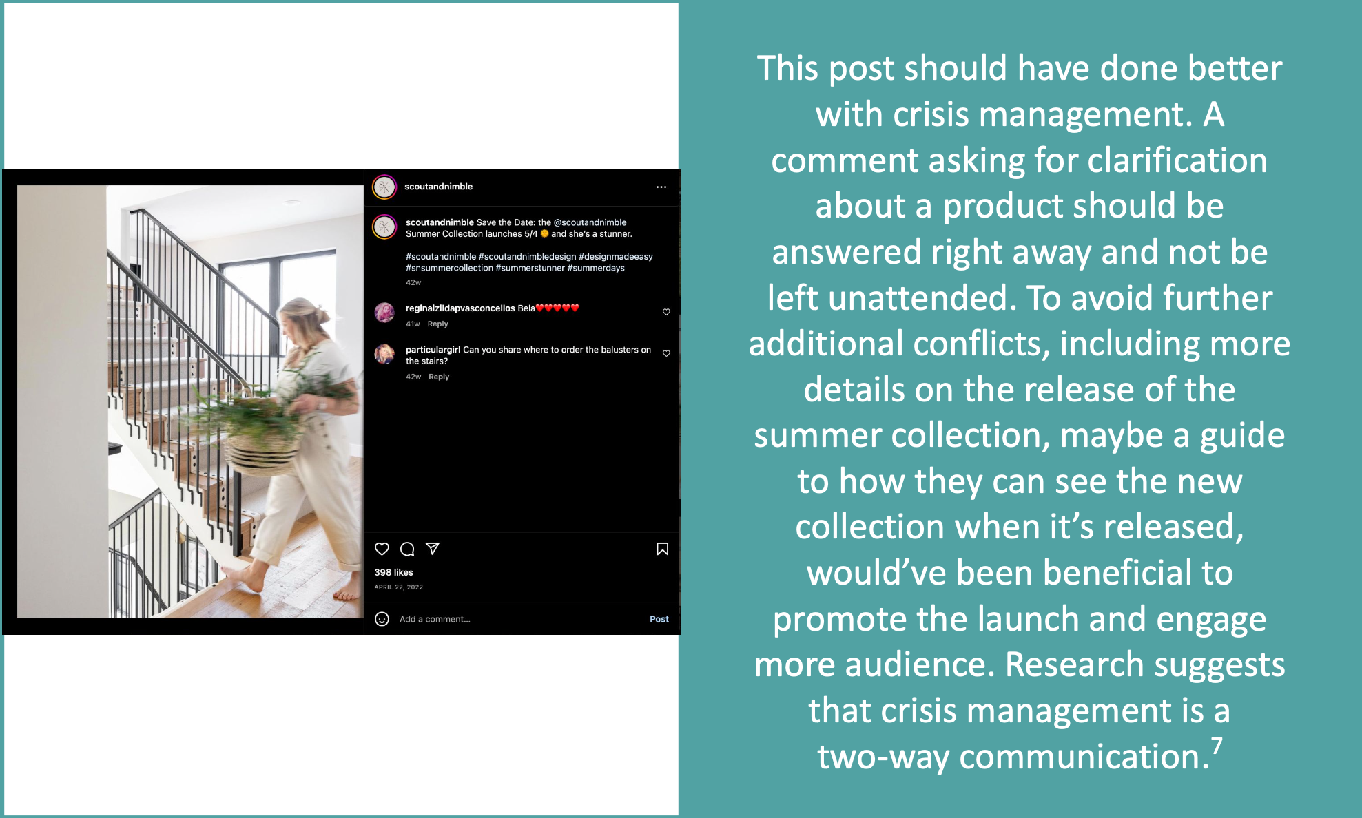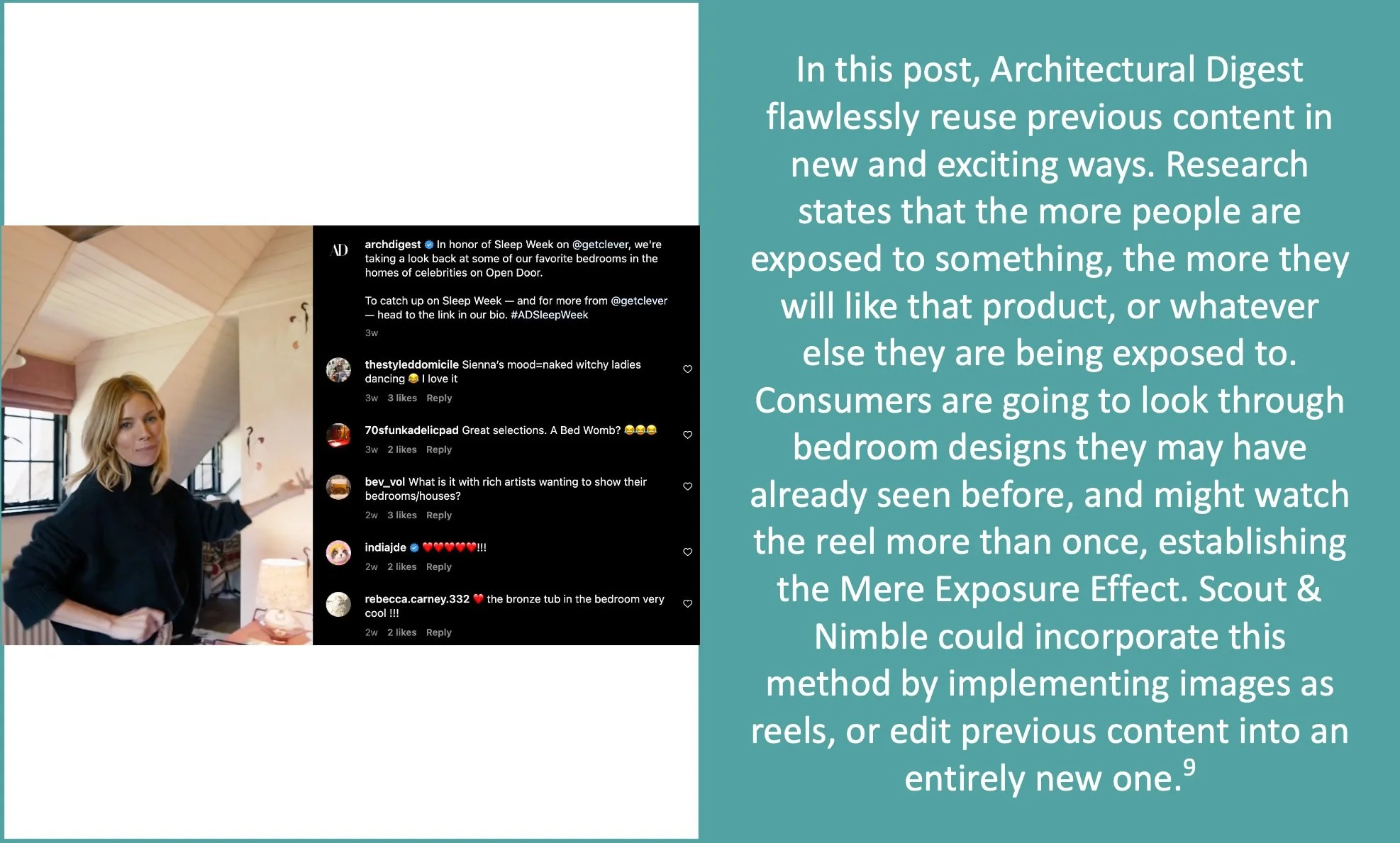 Scout and Nimble promote modernized home decor and interior design tactics. This audit analyzes the brand’s social media strategy and engagement behaviors. The findings of my research showcase critical thinking abilities when looking into a brand’s identity, revealing opportunities for improvement and takeaways from competitors.